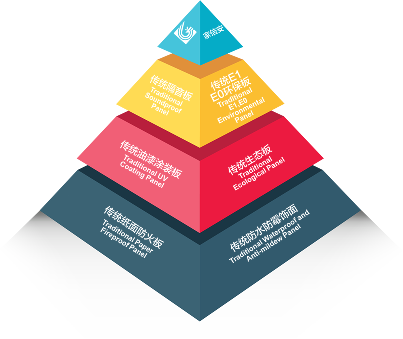 • “家倍安”使用高阻隔金屬鋁箔和高滲、超耐磨納米材料,經(jīng)過高溫高壓獨(dú)特的工藝方法處理,飾面木質(zhì)纖維結(jié)構(gòu)更加縝密,隔音、降噪,導(dǎo)熱系數(shù)低,防火等級高,達(dá)到國家防火材料防火標(biāo)準(zhǔn)A2級。
